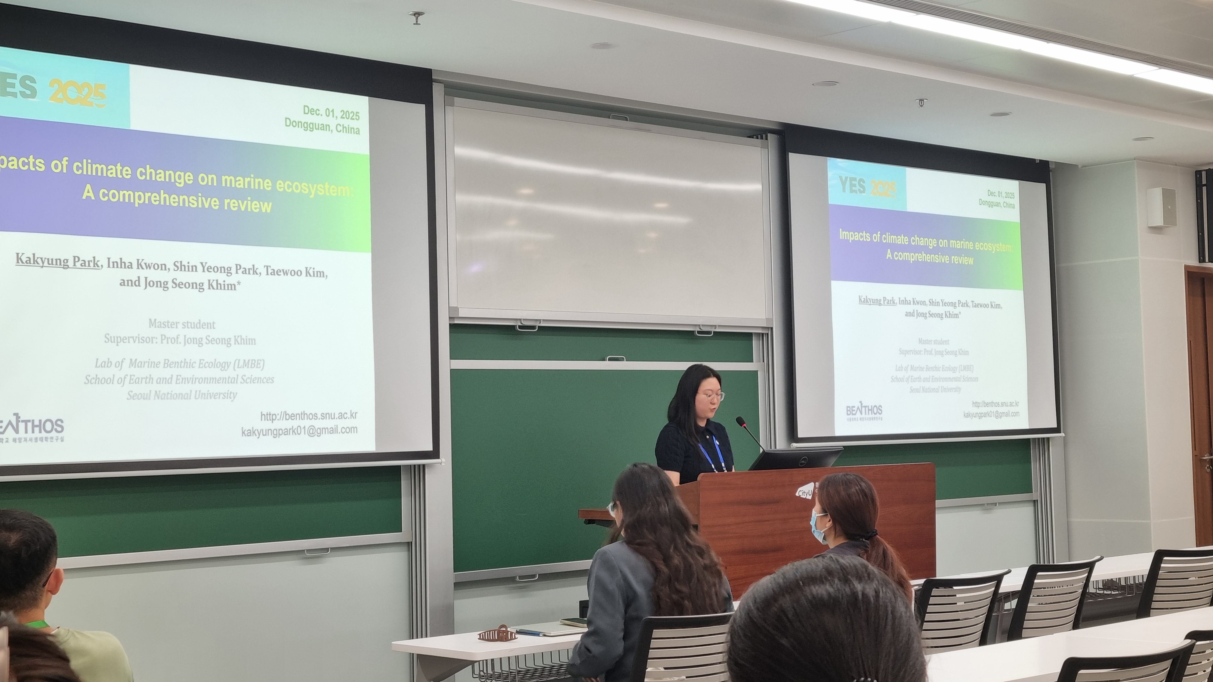 BENTHOS 학생들은 이번 YES 2025 학회에서, 해양환경 관련 연구의 선구자이신 여러 박사님들과 교수님들을 통해 전문적인 지식을 배워갈 뿐만 아니라 중국과 한국의 여러 대학교에서 온 학생들과 학술적으로 교류할 수 있었습니다. 이런 소통의 장과 값진 기회를 주신 김종성 교수님을 비롯하여, 심포지움 내빈 여러분께 감사의 말씀드립니다.