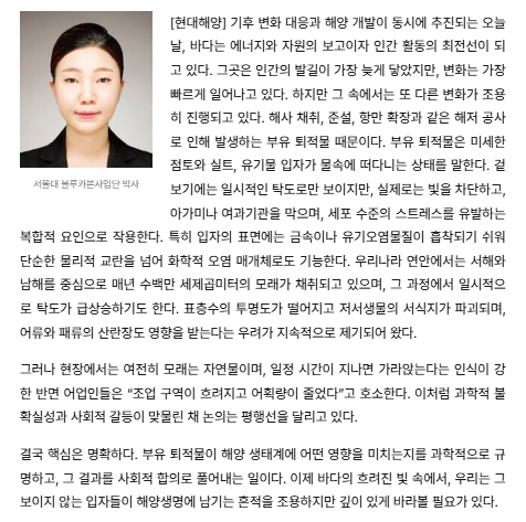 [언론] 부유 퇴적물, 보이지 않는 교란의 시작