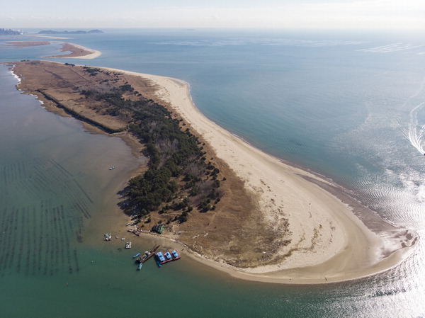 진우도의 가장 큰 매력은 하구가 만들어낸 살아 있는 지형이라는 점입니다. 서낙동강과 낙동강 하류에서 흘러내려온 흙과 모래가 하구에서 유속이 느려지며 겹겹이 퇴적되어 만들어진 섬입니다. 특히 섬의 방향에 따라 지형적 특징이 뚜렷하게 나뉘는데, 육지를 향한 북쪽 내만은 갯벌이 넓게 펼쳐져 있고 바다를 향한 남쪽은 모래해변인 사빈이 발달해 같은 섬 안에서도 퇴적 환경이 선명하게 대비를 이룹니다.